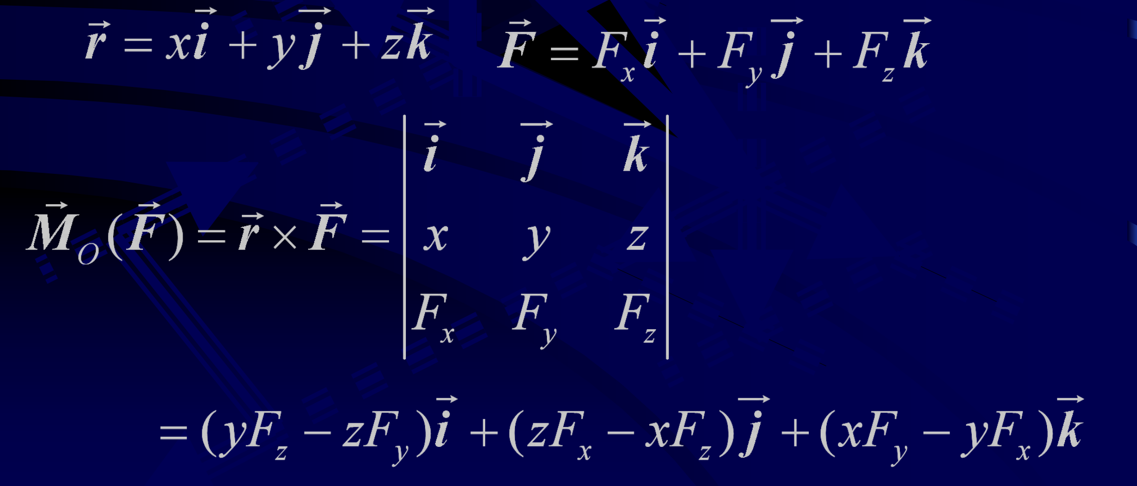 • 空间力系因力偶作用面的方位可能各不相同,故把力偶用矢量表示。